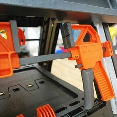- Bàn kẹp chắc chắn: đi kèm 2 bộ kẹp nhanh và 4 kẹp chân chó, giúp cố định vật liệu chắc chắn khi gia công. Chỉnh độ cao linh hoạt