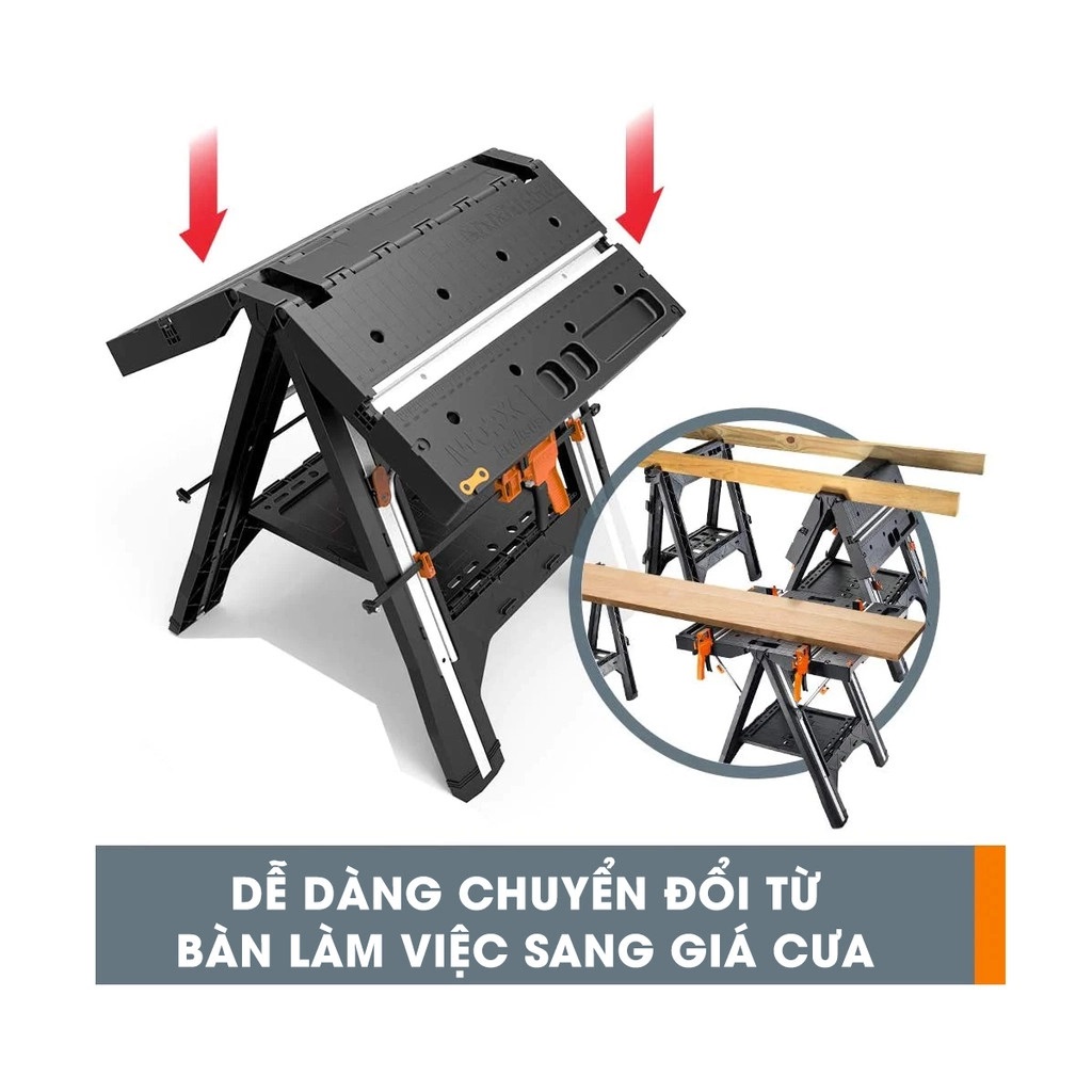 - Bàn làm việc đa năng cho các công việc gia công nguội như cưa xẻ, sửa chữa, lắp ráp,...Kệ đỡ dụng cụ tiện lợi, được trang bị thêm thanh đỡ và móc treo dụng cụ, giúp bạn sắp xếp và cất giữ dụng cụ gọn gàng, dễ dàng tìm kiếm khi sử dụng.