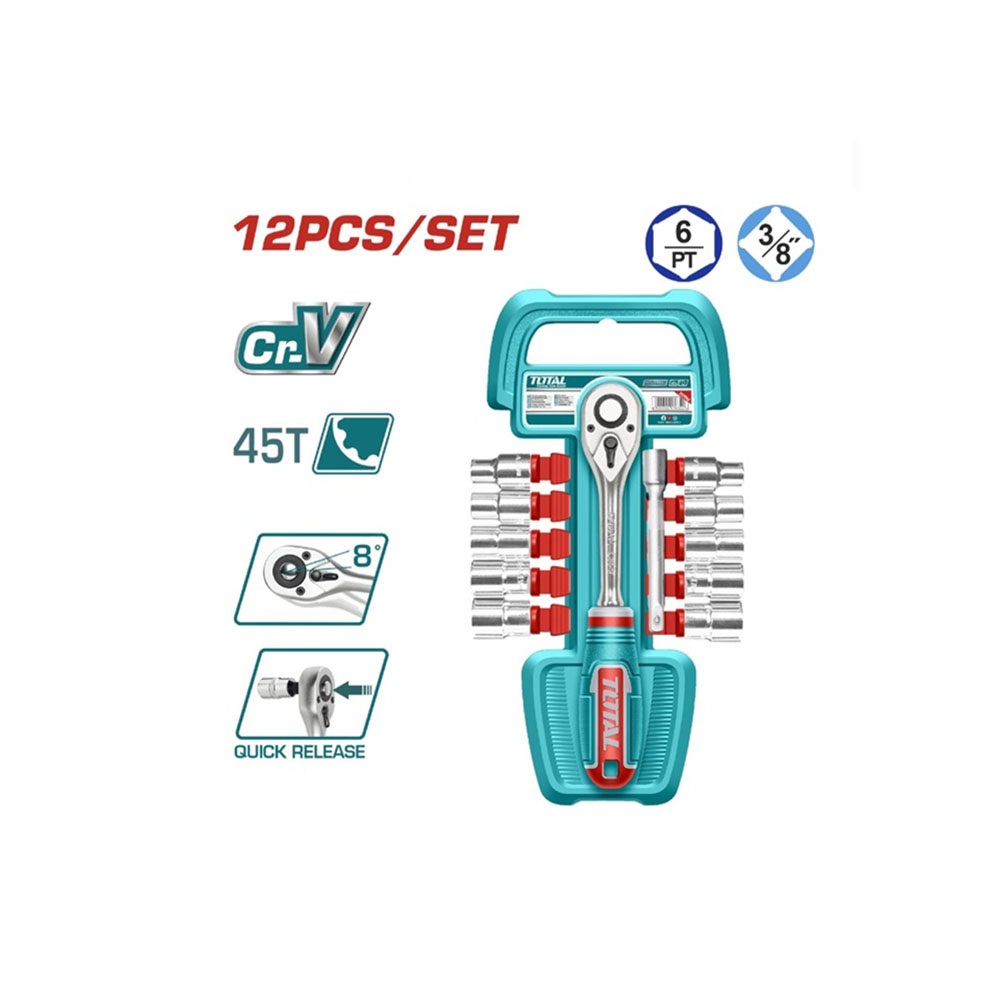 Bao gồm: 10 đầu tuýp Dr 3/8": 8-10-11-12-13-14-15-16-17-19mm 1 tay vặn tháo nhanh 3/8" 72T 1 thanh mở rộng 3/8" 6"(150mm) Chất liệu: 50BV30 Thép Cr-V cao cấp Xử lý nhiệt, mạ crom. Đóng gói bằng móc nhựa