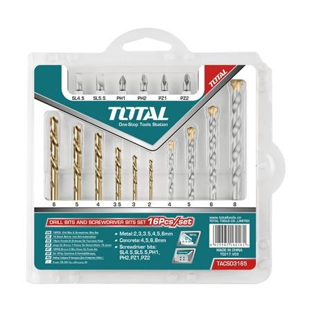 Bộ 6 mũi khoan xoắn ( size: 2,3,4,5,6 mm); Bộ 4 mũi khoan bê tông (size: 4,5,6,8 mm); Bộ 6 mũi siết vít (SL4.5, SL5.5, PH1, PH2, PZ1, PZ2). 2 vỉ. (40/T)