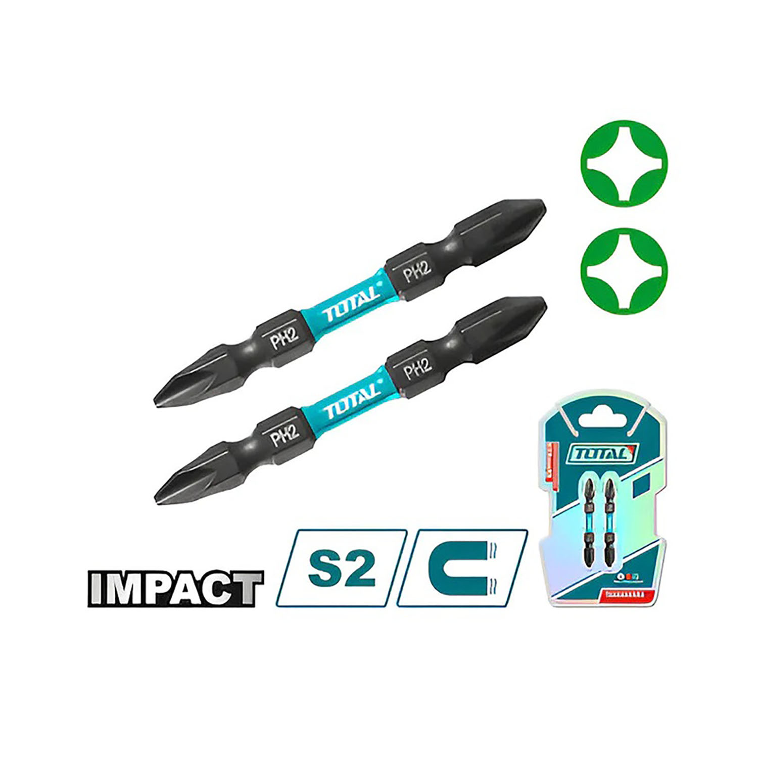 Bộ 2 mũi bắt vít PH2+PH2,65mm Thép công nghiệp S2 Bề mặt màu đen có nam châm Đóng gói bằng vỉ đôi