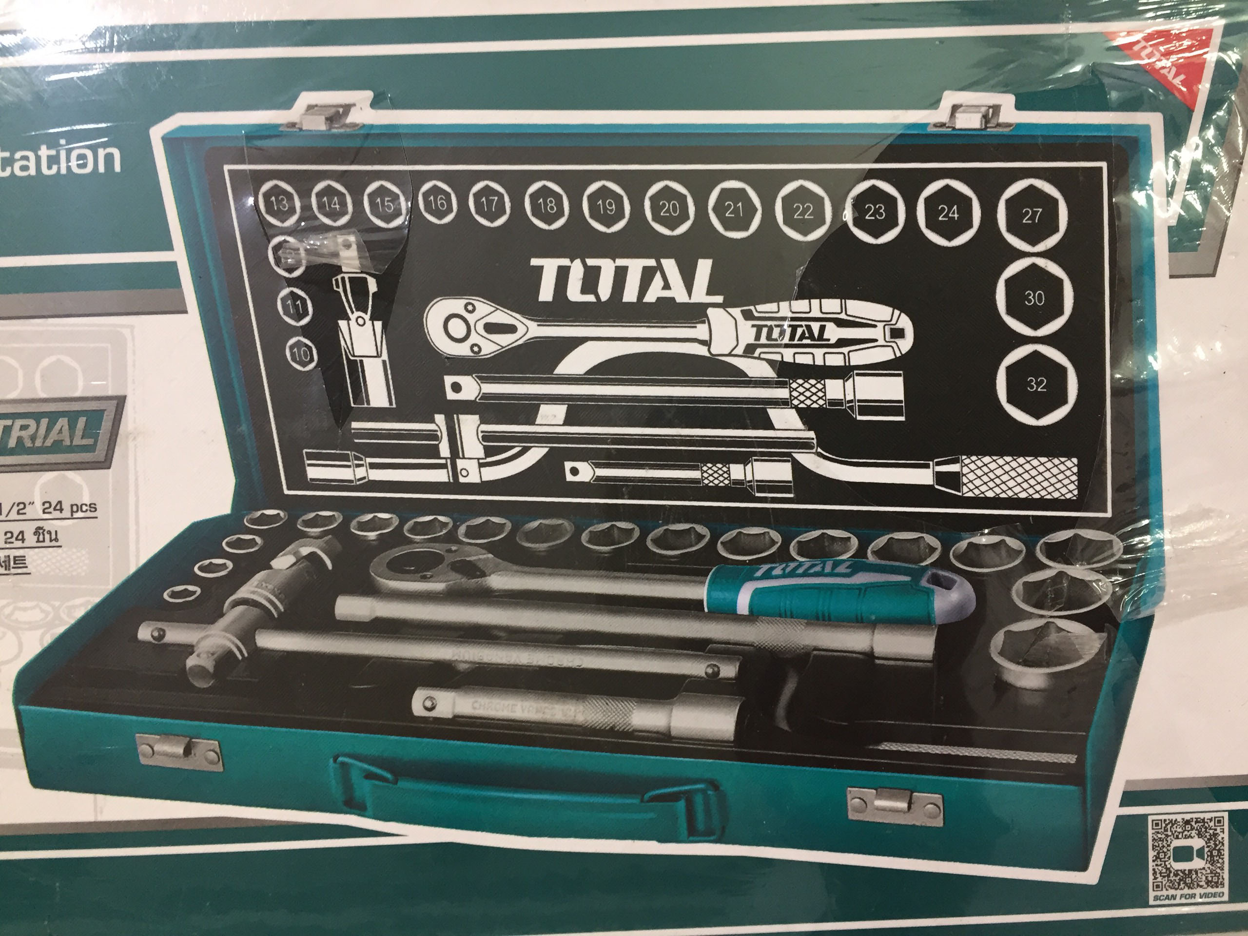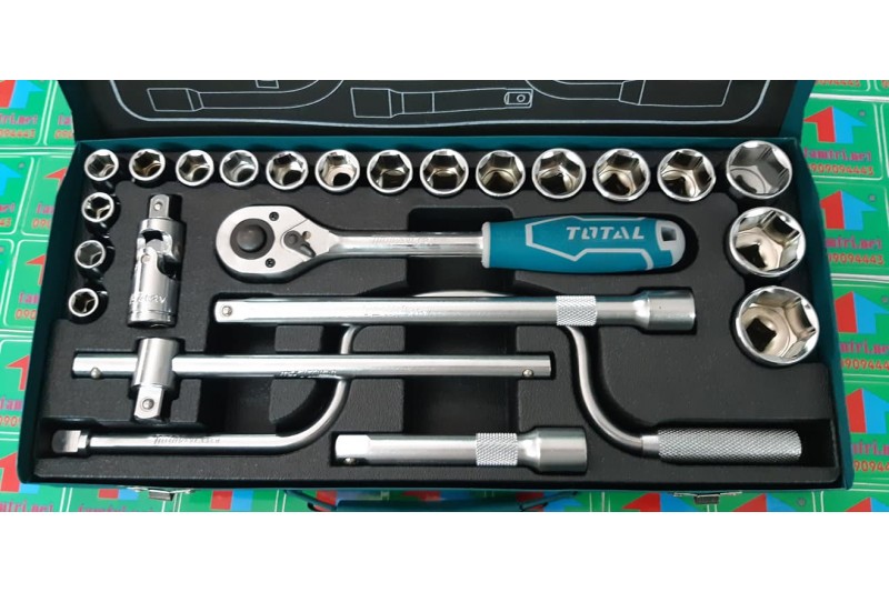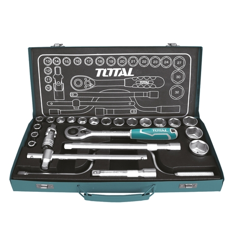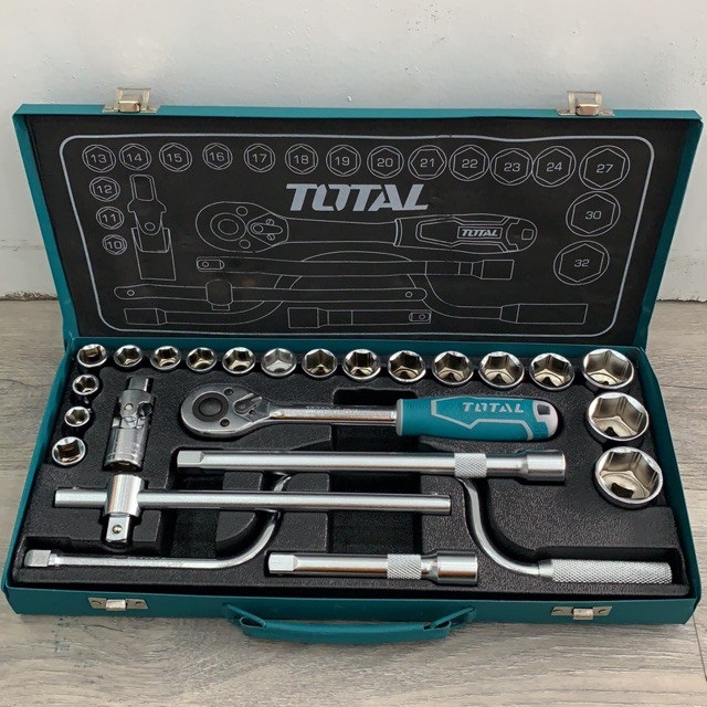 Gồm 18 socket 1/2 inch CRV DR. ứng với các size: 10,11,12,13,14,15,16,17,18,19,20,21 ,22,23,24,27,30,32 2 cái thanh mở 1/2" DR .1 cái thanh trượt chữ T 1/2" DR. 1khớp nối 1/2" DR. 1 tay cầm speeder 1/2" DR. 1 tay cầm ratchet nhanh 1/2" DR. 1 thùng kim loại - 4/T