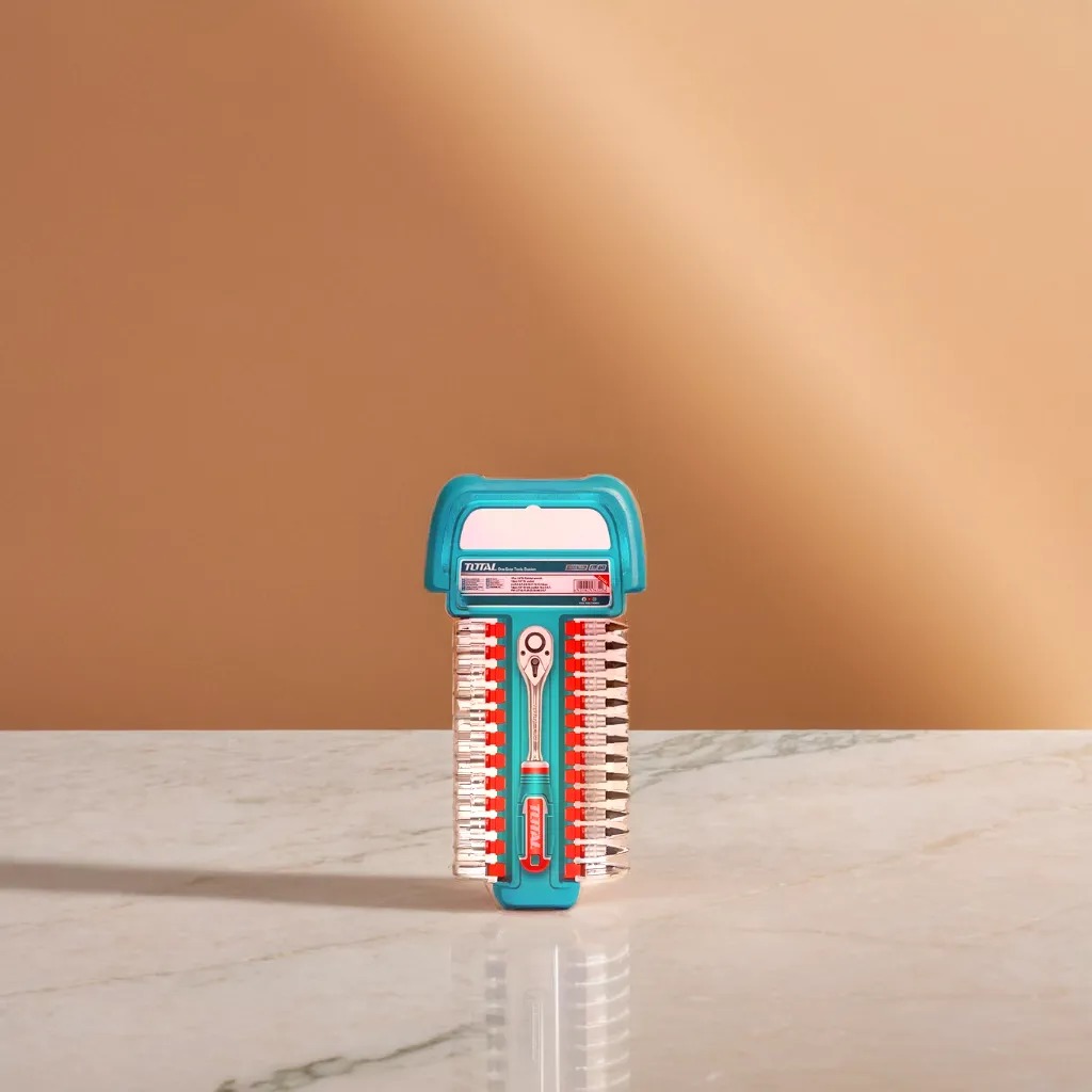 Bao gồm: 12 đầu tuýp Dr 1/4": 4-4.5-5-6-7-8-9-10-11-12-13-14mm 14 đầu tuýp 1/4": SL4-5.5-7; PH1-2; T10-15-20-25-30; H4-5-6-7 1 tay vặn tháo nhanh 1/4" 72T Chất liệu đầu tuýp: Thép Cr-V cao cấp 50BV30 Chất liệu mũi tuýp: Thép chất lượng cao S2 Với tay cầm mềm ba màuXử lý nhiệt, mạ crom. Đóng gói bằng móc nhựa