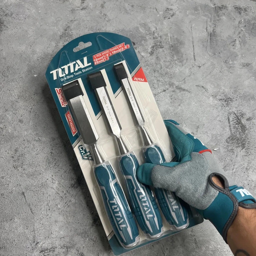 Bộ 3 đục gỗ. Chiều rộng: 12mm,19mm,25mm Chiều dài:140mm Dùng đục Gỗ,chất liệu: CRV Đóng gói bằng thẻ trượt