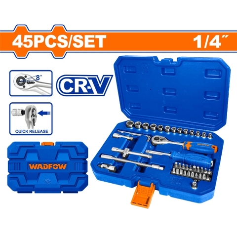 - Bộ 45 chi tiết tay vặn đầu tuýp 1/4" gồm: