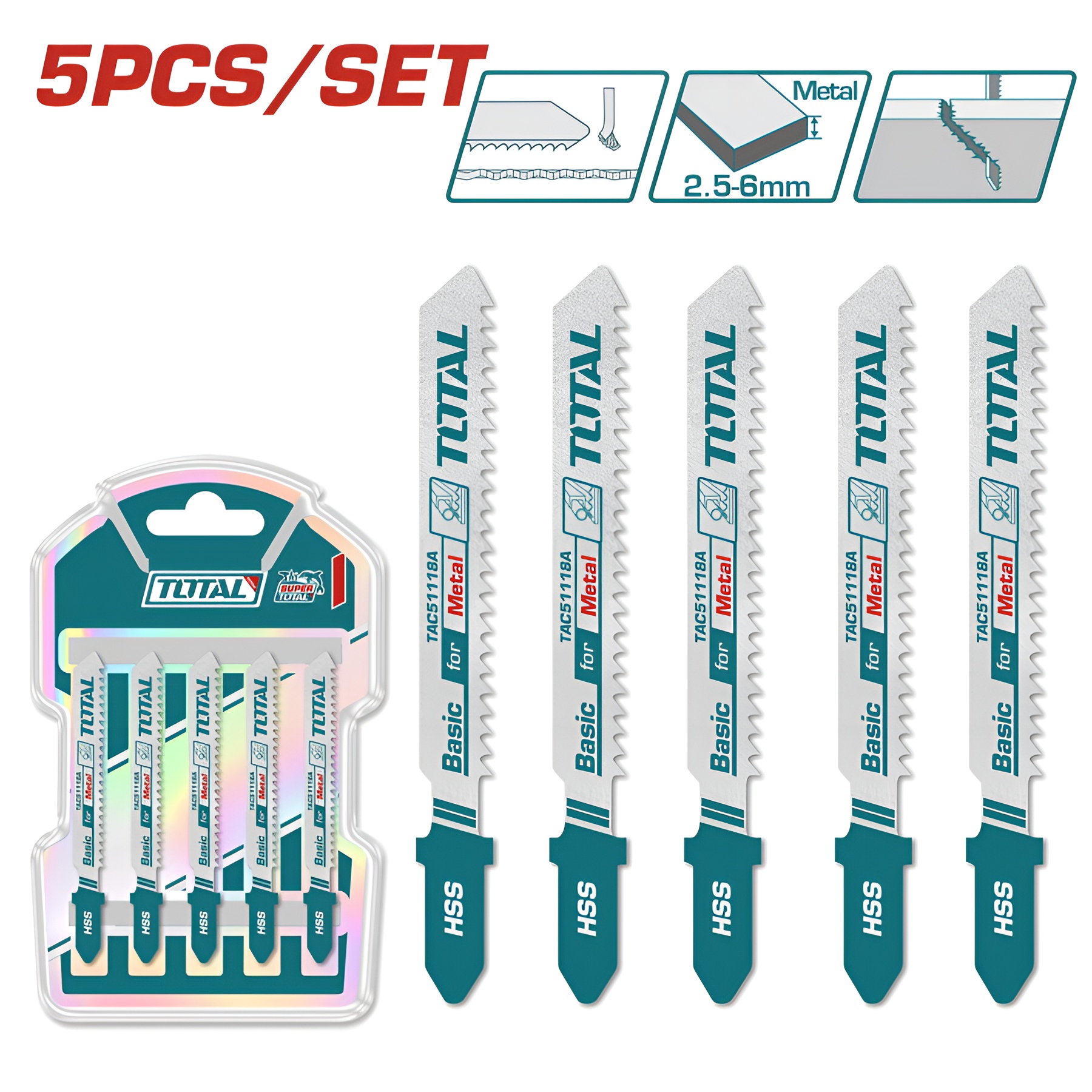 Dùng cưa kim loại. Chiều dài răng cưa: 50mm, 21TPI, HSS, răng cưa kiểu lượn sóng. 5 cái/bộ Đóng gói bằng thẻ vỉ. 250/T