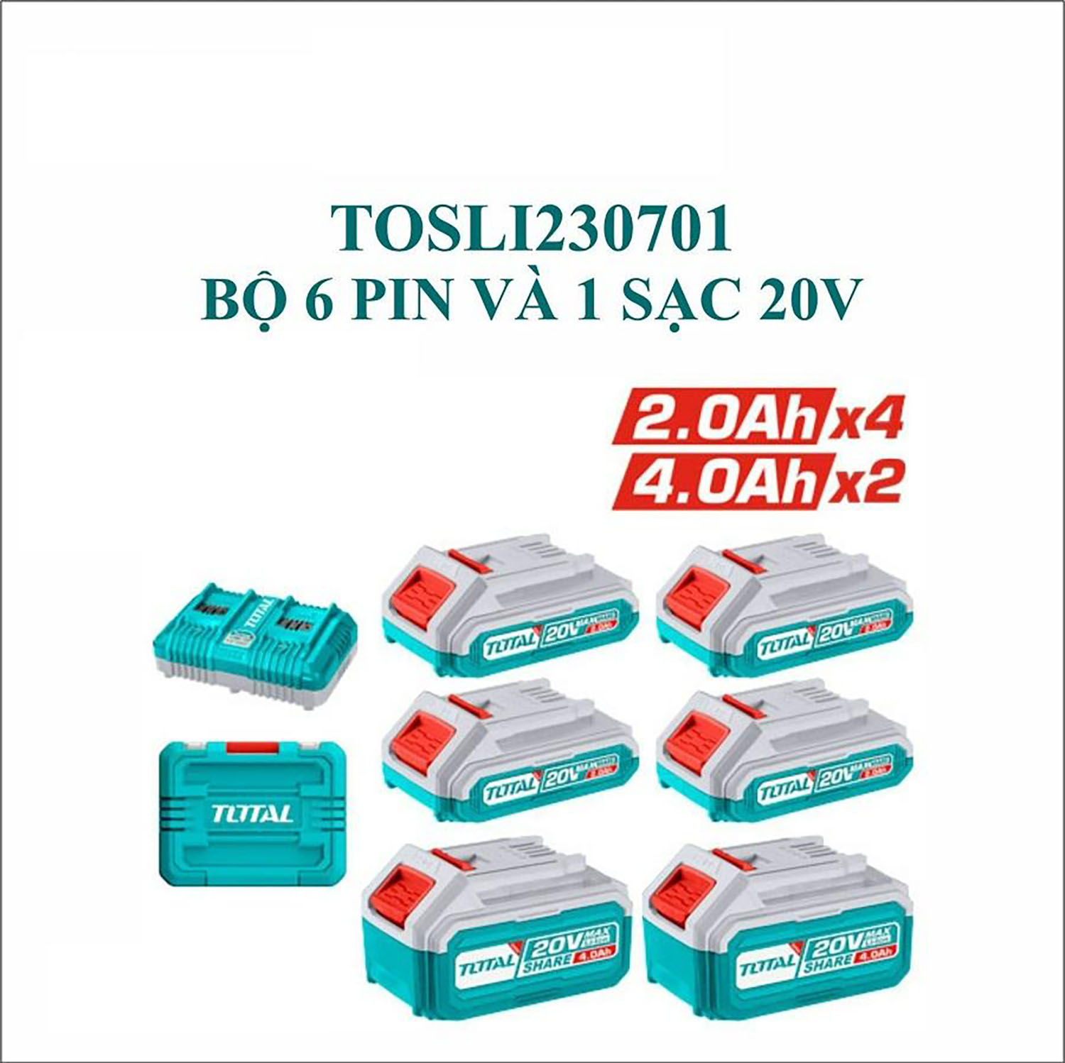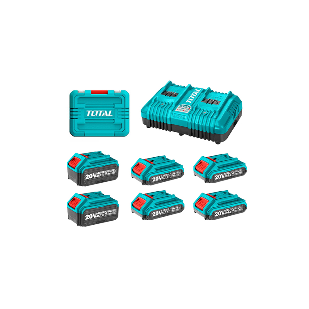 Gồm 4 pin 20V/2Ah (TFBLI20011) 2 pin 20V/4Ah (TFBLI2002) Và 1 sạc TCLI2034 Đóng gói trong hộp nhựa