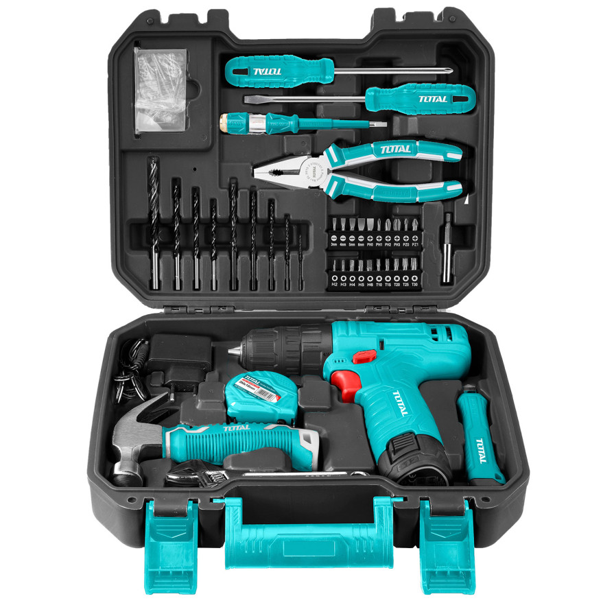Bộ 81 món gồm: 1 máy khoan pin 12V/ 1.5Ah ( TDLI12415). Kèm 1 pin 1.5Ah và 1 sạc, Điện thế sạc: 220V-240V~50/60Hz, 1 mũi từ, 1 búa nhổ đinh 8OZ, 1 tua vit SL5.5x100, 1 tua vít PH1x100, 1 kềm răng 7 inch, 1 mỏ lết 6 inch, , 1 bút thử điện (Điện áp thử nghiệm 100-500VAC), 1 thước kéo 3M, 1 dao rọc 9mm, 5 Mũi khoan xoắn 2,3,4,5,6mm, 4 Mũi khoan gỗ: 4,5,6,8mm.20 tua vít SL3, SL4, SL5, SL6, PH0, PH1, PH2, PH3, PZ0, PZ1, PZ2, PZ3, T10, T15, T20, T30, H3, H4, H5, H6. 20 ốc(10c*ST3.5,10c*ST4), 20 bake nhựa (10c*6mm , 100c*5mm).