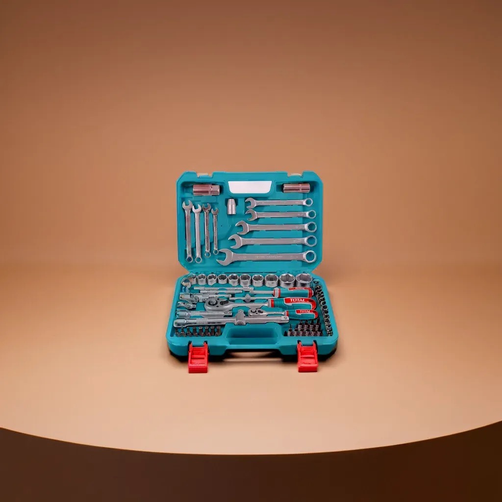 Bao gồm: 1 cờ lê Dr 1/4", 72T 13 đầu tuýp 1/4" Dr : 4-4.5-5-5.5-6-7-8-9-10-11-12-13-14mm 17 mũi vít 1/4": SL4-5.5-6.5, PH1-2, PZ1-2, H3-4-5-6, T8-10-15-20-25-30 1 khớp nối đa năng 1/4"Dr 2 thanh nối dài 1/4"Dr: 50mm & 100mm 1 thanh chữ T trượt 1/4"*114mm 1 thanh mở rộng linh hoạt 1/4"*150mm 1 tay cầm con quay 1/4"*150mm 1 chuyển đổi 1/4" 1 cờ lê văn Dr 1/2", 72T
