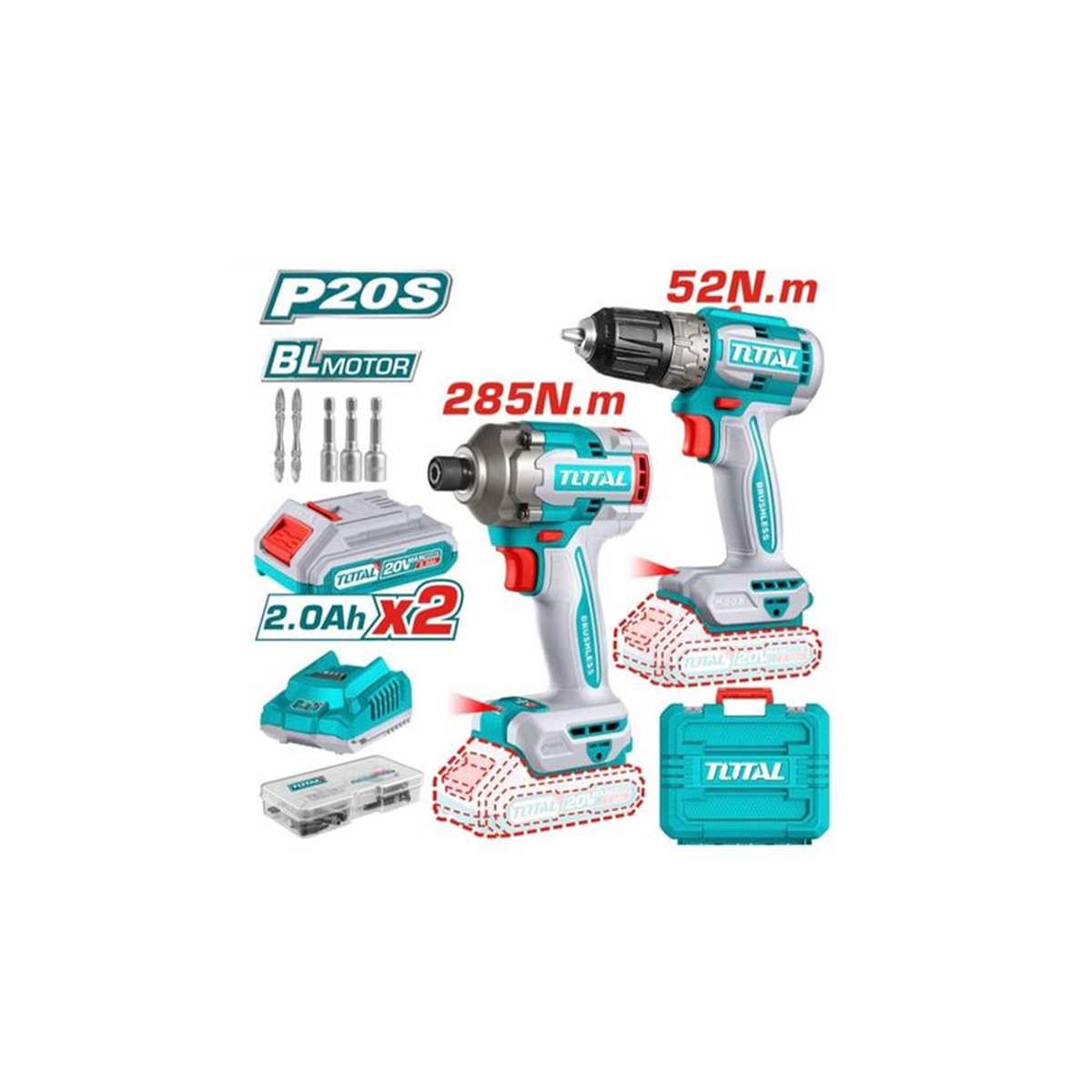 Bộ combo máy khoan TDLI204531 & máy siết vít TIRLI2028 không chổi than dùng pin 20V. Kèm theo: 1 sạc 20V(TFCLI2001) 2 pin 2.0Ah (TFBLI20011) 47 món linh kiện 2 tua vít, 3 đai ốc. Điện áp sạc: 220- 240V~50/60Hz Đóng gói bằng hộp đựng