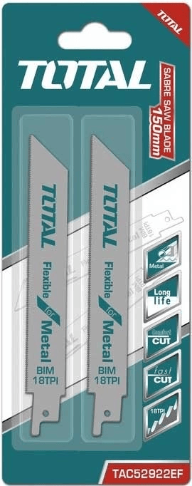Ưu tiên để cưa kim loại . Kích thước lưỡi: 150mmX19mmX1.25mm, mỗi inch có 18 răng cưa - chất liệu bằng hợp kim - răng cưa và bảng lưỡi đã được gia công, đuôi lưỡi 1/2 '',1 bộ 2 lưỡi cưa, Cắt tất cả các kim loại bao gồm đường ống có đk (<100mm), thép không gỉ và tấm kim loại (1,5-4mm) (100/T)