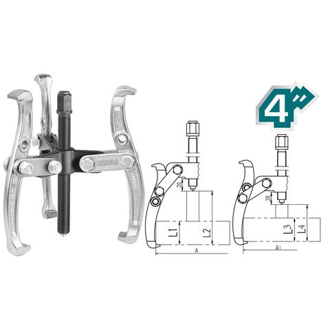 Kích thước cảo 3 chấu: 4 inch, Lực cảo tối đa: 4000 kg, Chất liệu bằng Cr-V, chiu nhiệt cao, Kích thước phạm vi cảo:A=120MM,A1=125MM,L1=40MM,L2=87MM,L3=38MM,L4=60MM - 10/T
