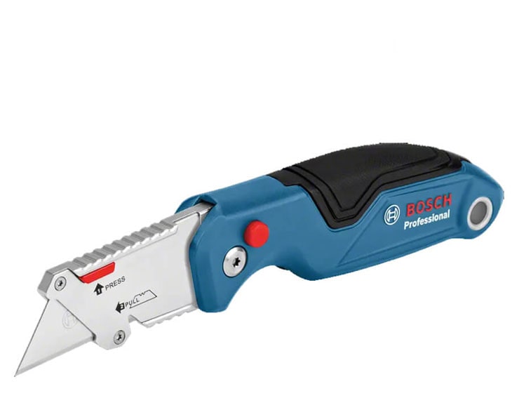 - Dao gấp gọn cắt ron Bosch 1600A016BL có thiết kế nhỏ gọn, tiện lợi với cán nhôm chắc chắn, giúp tăng độ bền và độ cứng cáp khi sử dụng.