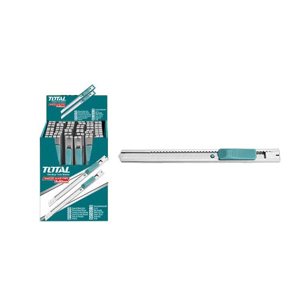 Kích thước lưỡi: 9mm(R)x80mm(L) (THT5190901) thân thép không gỉ. Kèm 1 lưỡi dao, Tự động khóa Chiều dài: 132mm, nút ấn phẳng. Đóng gói trong hộp màu