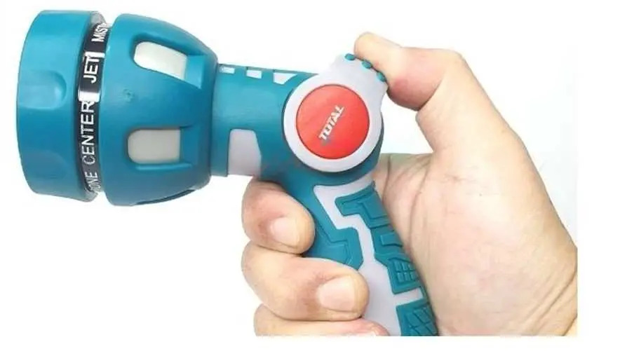 Đầu phun hai màu đôi có 9 kiểu phun với bộ chuyển đổi dụng cụ 3/4 ". 9 kiểu phun cho mọi nhu cầu tưới: phun sương, làm ướt, phẳng, thẳng đứng, hoa sen, hình nón, quạt, trung tâm, tia phun. Tay cầm cao su thoải mái. Thiết kế bật / tắt kiểu "U". 48/T