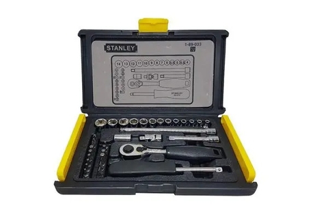 - Đầu tuýp bộ 1/4" MET 35 chi tiết Stanley 89-033-1 gồm có 35 chi tiết, bộ sản phẩm này có tính ứng dụng cao trong ngành sửa chữa, lắp đặt mỗi chi tiết đều được làm bằng hợp kim thép CR-V nên có độ cứng cao, đảm bảo sẽ không bị mài mòn hay gỉ sét sau 1 thời gian sử dụng. Bộ tuýp này được đựng trong hộp sắt trong khá là ngăn nắp, hạn chế bị thất lạc các chi tiết.