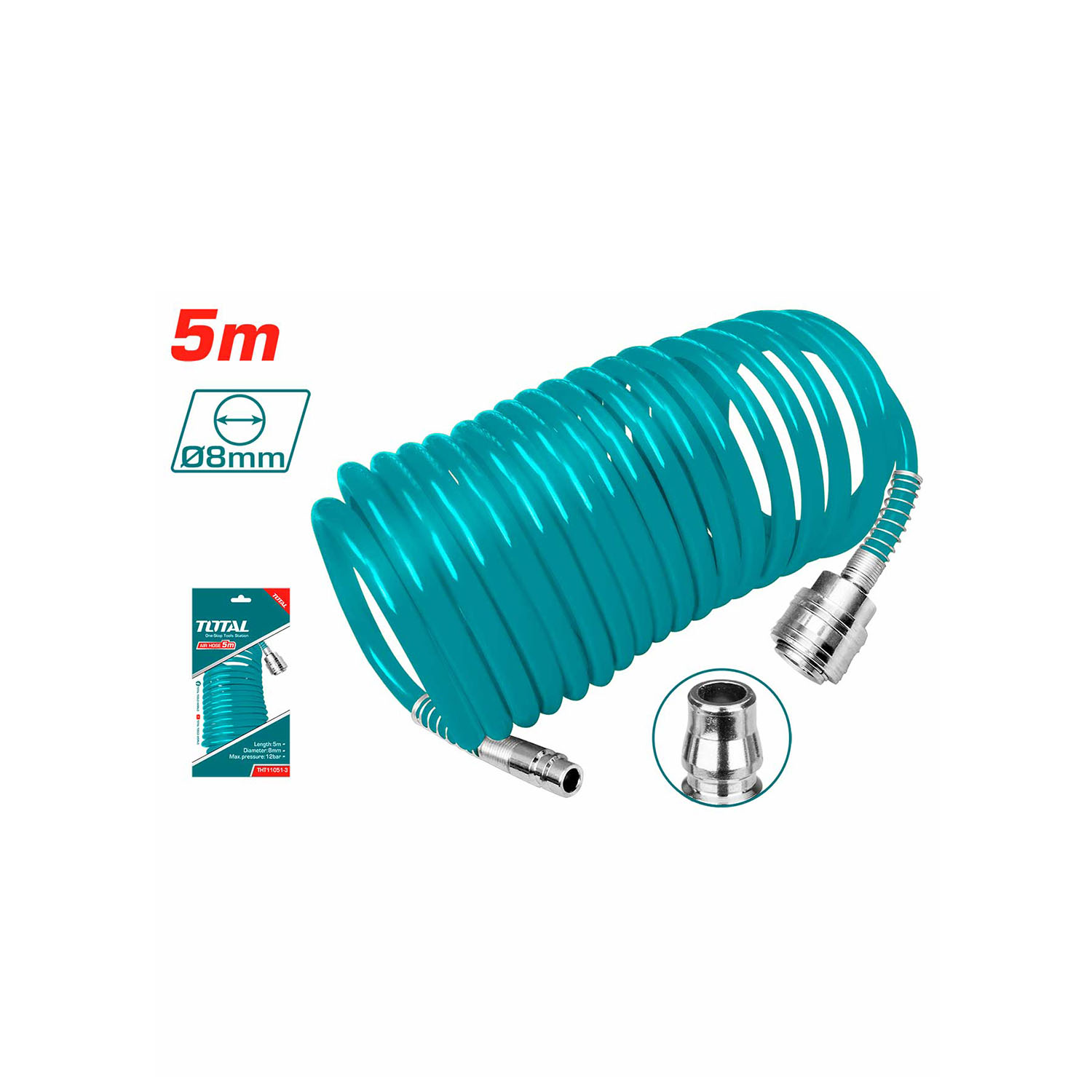 Chất liệu: PU. Chiều dài: 5M Chỉ với đầu nối loại Nitto.. Đường kính trong: 5 mm. Đường kính ngoài: 8mm Đóng gói thu gọn trong vĩ nhựa giấy