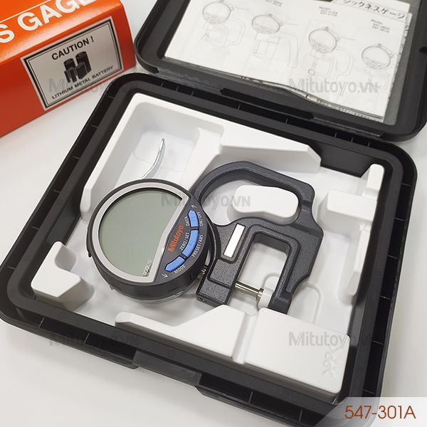 - Đồng hồ đo độ dày điện tử Mitutoyo 547-301A là một loại thước đo dựa trên nguyên lý hoạt động của đồng hồ so điện tử độ chính xác cao Mitutoyo, được thiết kế để đo các kích thước nhỏ một cách nhanh chóng và hiệu quả với độ chính xác cao.