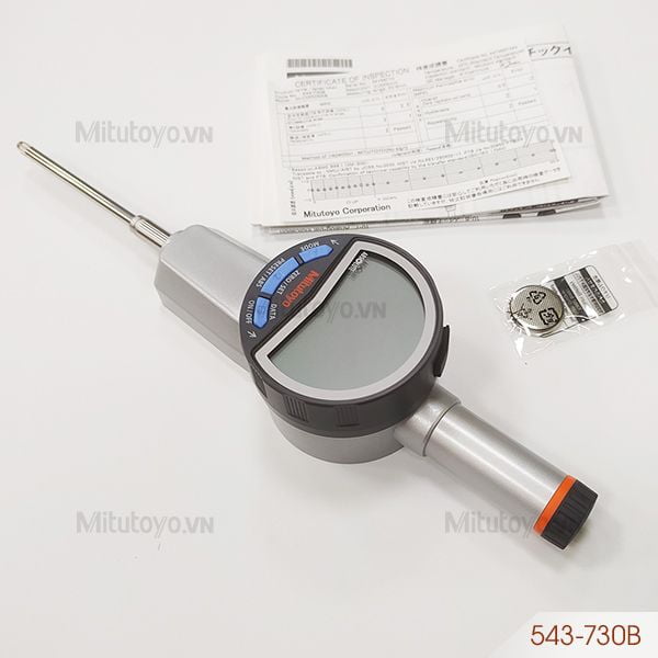 - Đồng hồ so điện tử Mitutoyo 543-730B được thiết kế tính thẩm mỹ cao, gọn nhẹ có khoảng đo 0 - 50.8mm độ hiển thị: 0.0005 / 0.001 / 0.01mm, độ chính xác: ±0.005mm. Đồng hồ đo hệ: metric, chiều cao ký tự 11mm giúp cải thiện khả năng đọc. Kết quả đo đạt được hiển thị trên màn hình điện tử rõ ràng giúp người sử dụng dễ dàng đọc kết quả nhanh chóng.