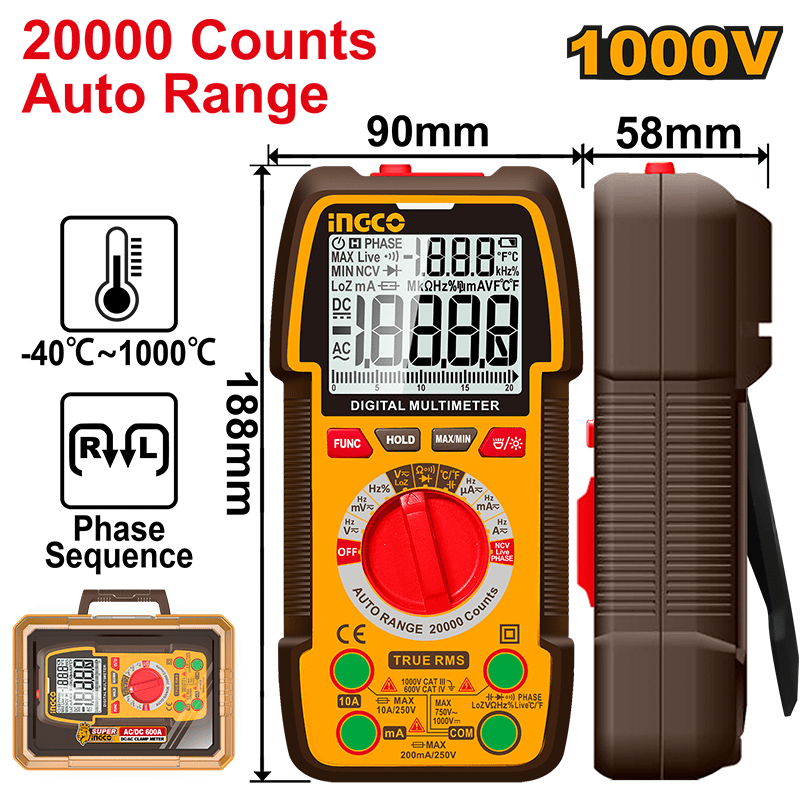 - Dòng điện DC/AC: 200.00uA/2000.0uA/20.000mA/200.00mA/10.000A
