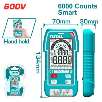Hiển thị 6000 số đếm TRUR RMS Chức năng thông minh Dòng điện DC/AC: 6000uA/60mA/600mA Điện áp DC/AC: 60mV/600mV/6V/60V/600V Điện trở: 600Ω/6kΩ/60kΩ/600kΩ/6MΩ/60MΩ Điện dung: 6nF/60nF/600nF/6uF/600uF/6mF/60mF Tần số: 10Hz/100Hz/1000Hz/10kHz/100kHz/1000kHz/10 MHz Phát hiện điện áp không tiếp xúc Đèn pin Kiểm tra điốt. Lưu trữ ngày Có chức năng đèn LED đầu vào, báo pin yếu. Tự động tắt nguồn Kèm 3 pin AAA LR03 Đóng gói bằng vỉ đôi