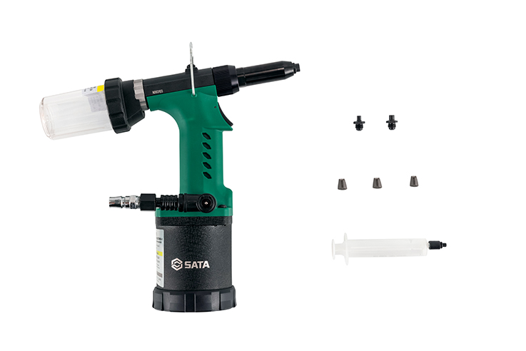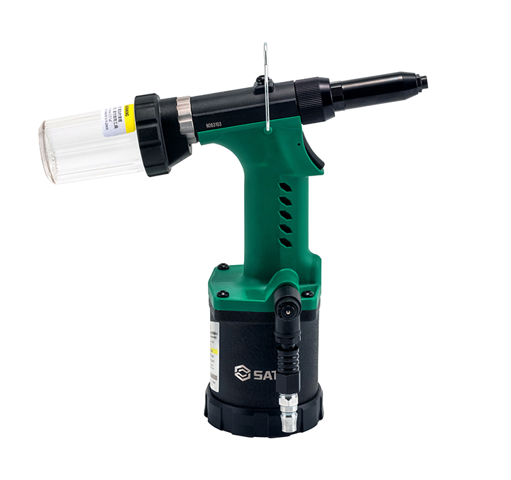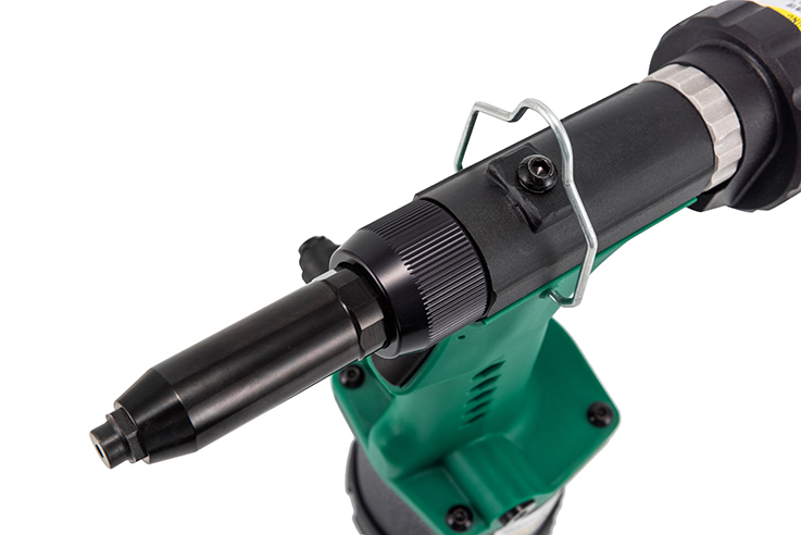 ● Thiết kế tự mồi. Đinh tán có thể được tự động hút vào vòi súng và thanh đinh tán có thể tự động được hút vào lọ thu thập đinh sau khi kéo đinh tán.
