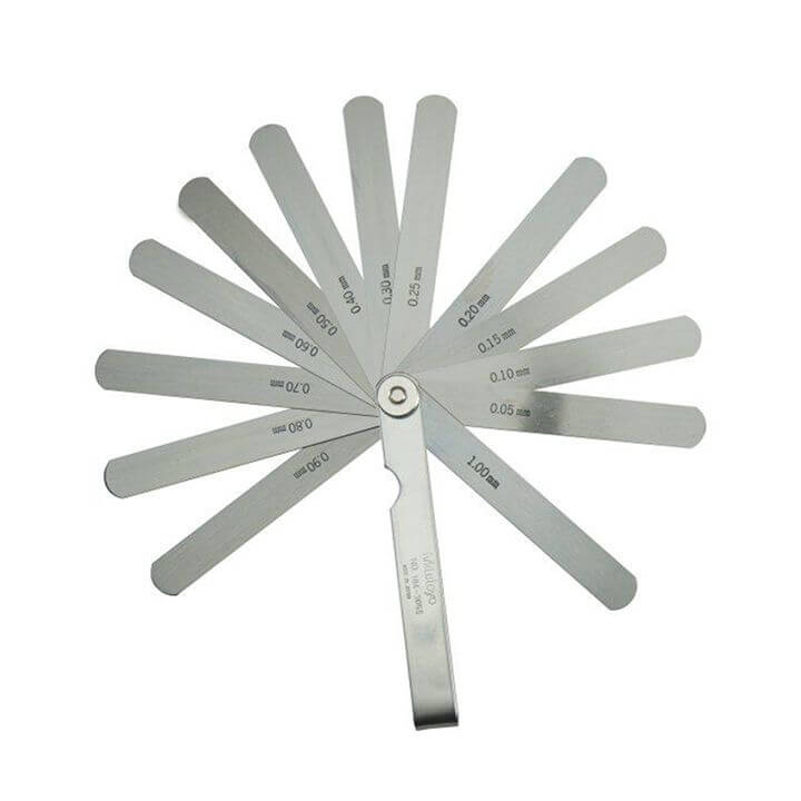 - Mỗi lá đo là một độ dày chuẩn theo thông số độ chia trên số lượng lá của mỗi bộ. Bao gồm 13 lá.