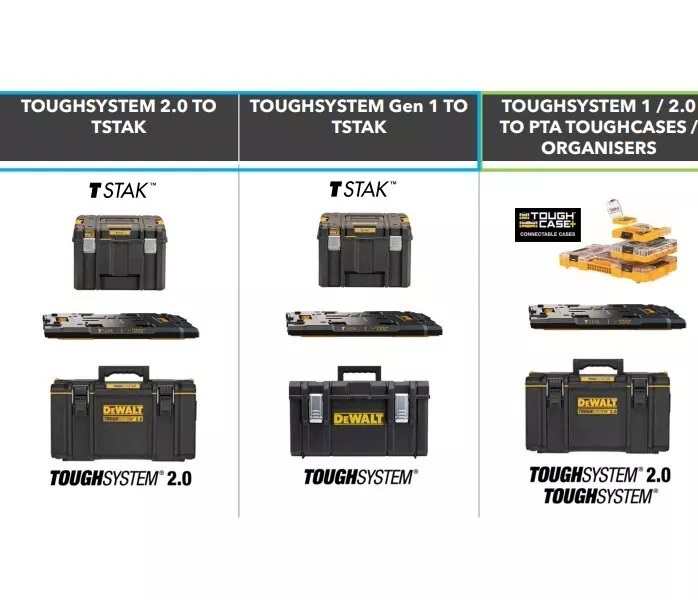 - Kết nối TOUGHSYSTEM® 2.0 sản phẩm để DEWALT® Tstak™ Mô-đun