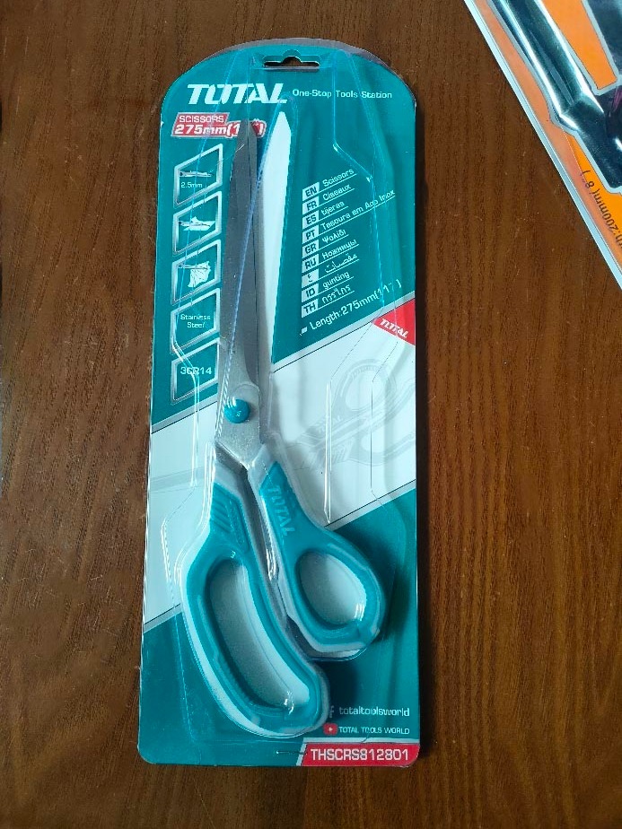 Kích thước: 275mm(10-3/4"). Chất liệu: thép không gỉ Độ dày lưỡi dao: 2,5mm. Tay cầm Total với kiểu dáng độc đáo Đóng gói bằng thẻ nhựa - 100/T