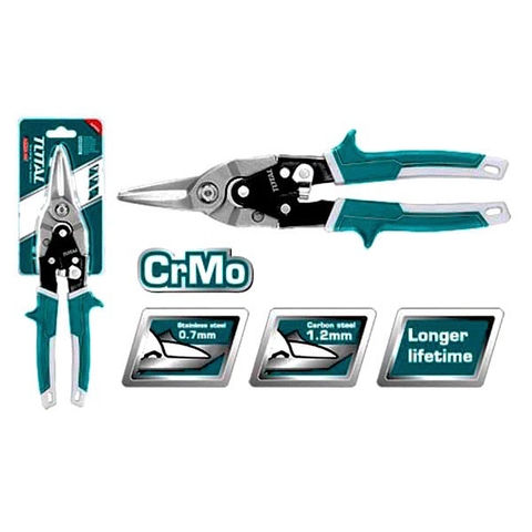 Kéo cắt tole (thẳng). Chiều dài: 250mm (10 ") Độ dày cắt tối đa:. Thép carbon ≤1,2mm Thép không gỉ ≤0.7mm. Đóng gói bằng nữa vỉ đôi. 40/T