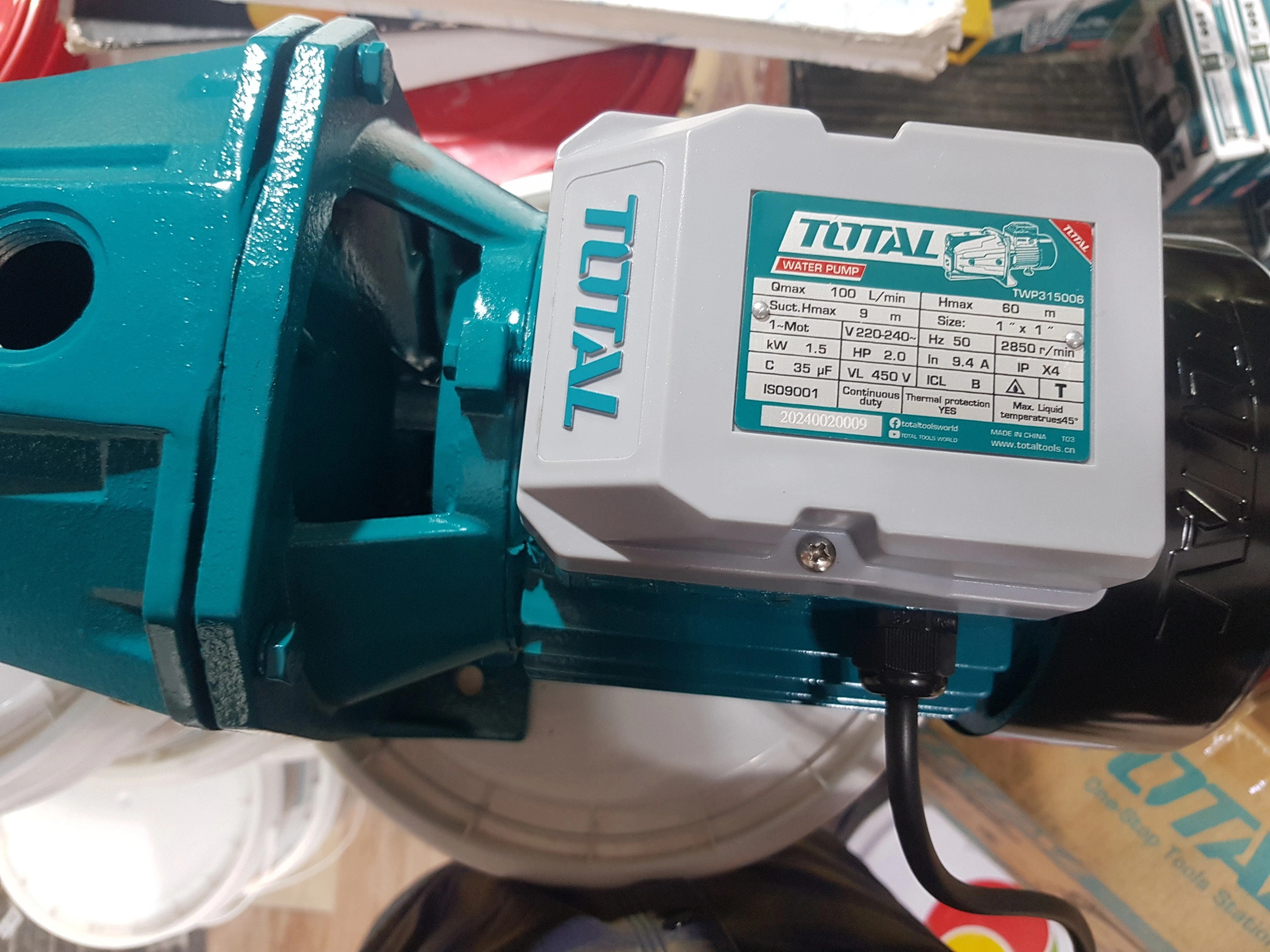 Máy bơm nước tự mồi, Điện áp: 220-240V ~ 50Hz Công suất đầu vào: 1500W(2HP). Chiều cao bơm tối đa: 60 m Lưu lượng tối đa: 100 L / phút. Độ hút sâu tối đa: 9m. Đường kính ống: 1 "x1-1/4". Mô tơ dây đồng, cánh quạt bằng đồng thau Chiều dài dây điện: 0,15m