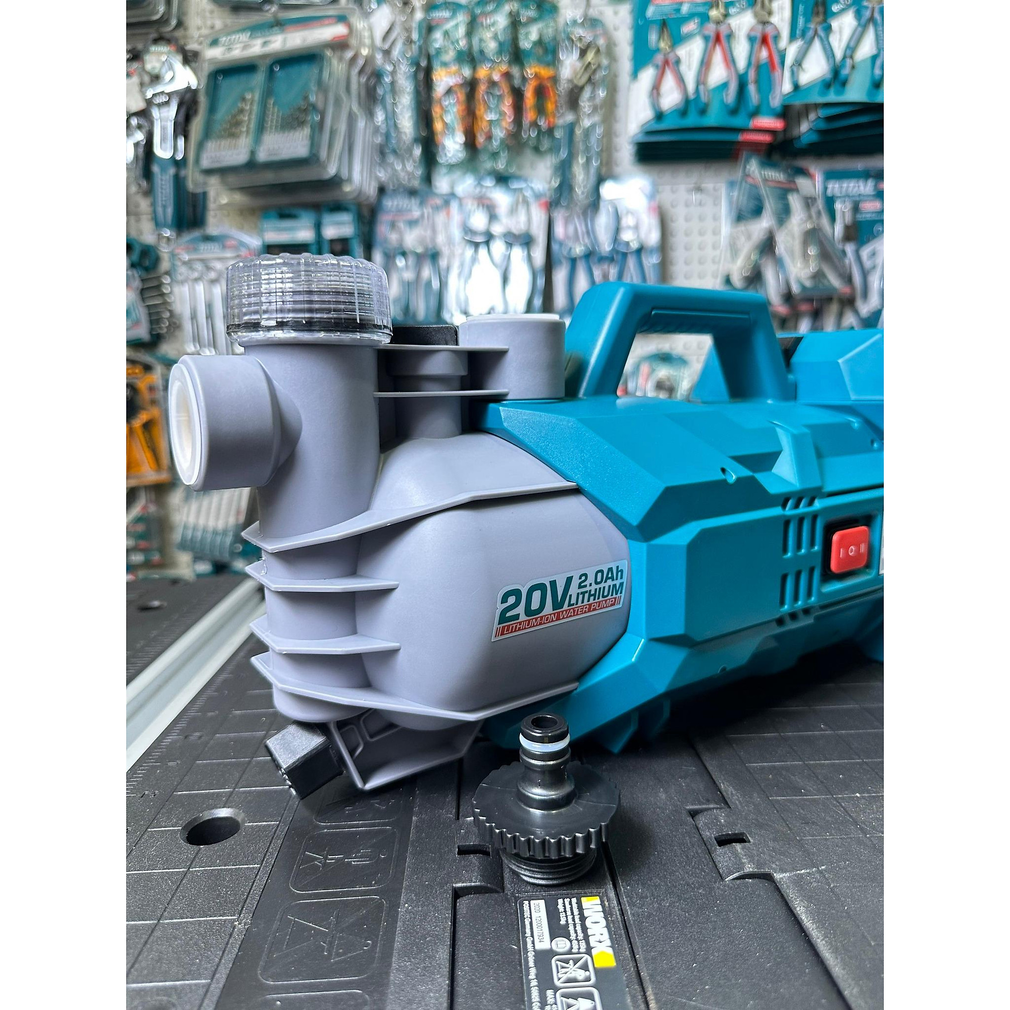 Điện thế: 20V, Công suất định mức: 180W(0.2HP), Đầu bơm tối đa: 22m, lưu lượng tối đa: 47L/phút Điều khiển chuyển đổi chế độ kép, đèn báo LED, Thời gian chạy pin ở chế độ tiết kiệm năng lượng: 30 phút. Thời gian chạy pin ở chế độ bình thường: 20 phút. Không kèm pin & sạc. Đóng gói trong hộp màu
