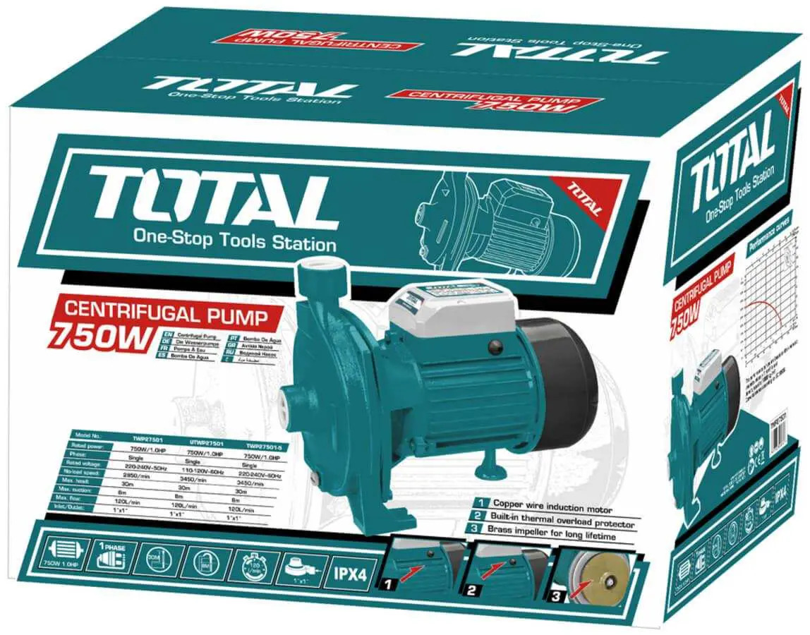 Điện thế: 220-240V~50Hz Công suất: 750W (1HP); Chiều cao bơm tối đa: 30 m; Độ hút sâu tối đa: 8m; Lưu lượng tối đa: 60L/p; Đường kính ống: 1"x1"; Mô tơ dây đồng, chiều dài dây cáp: 0.15m; TL: 10.7kg
