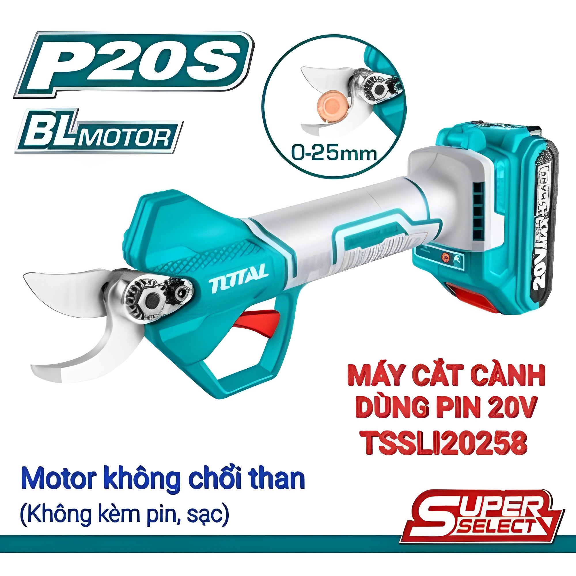Mô tơ không chổi than, Điện thế: 20V Đường kính cắt: 25mm Không kèm pin và sạc. Đóng gói bằng hộp màu