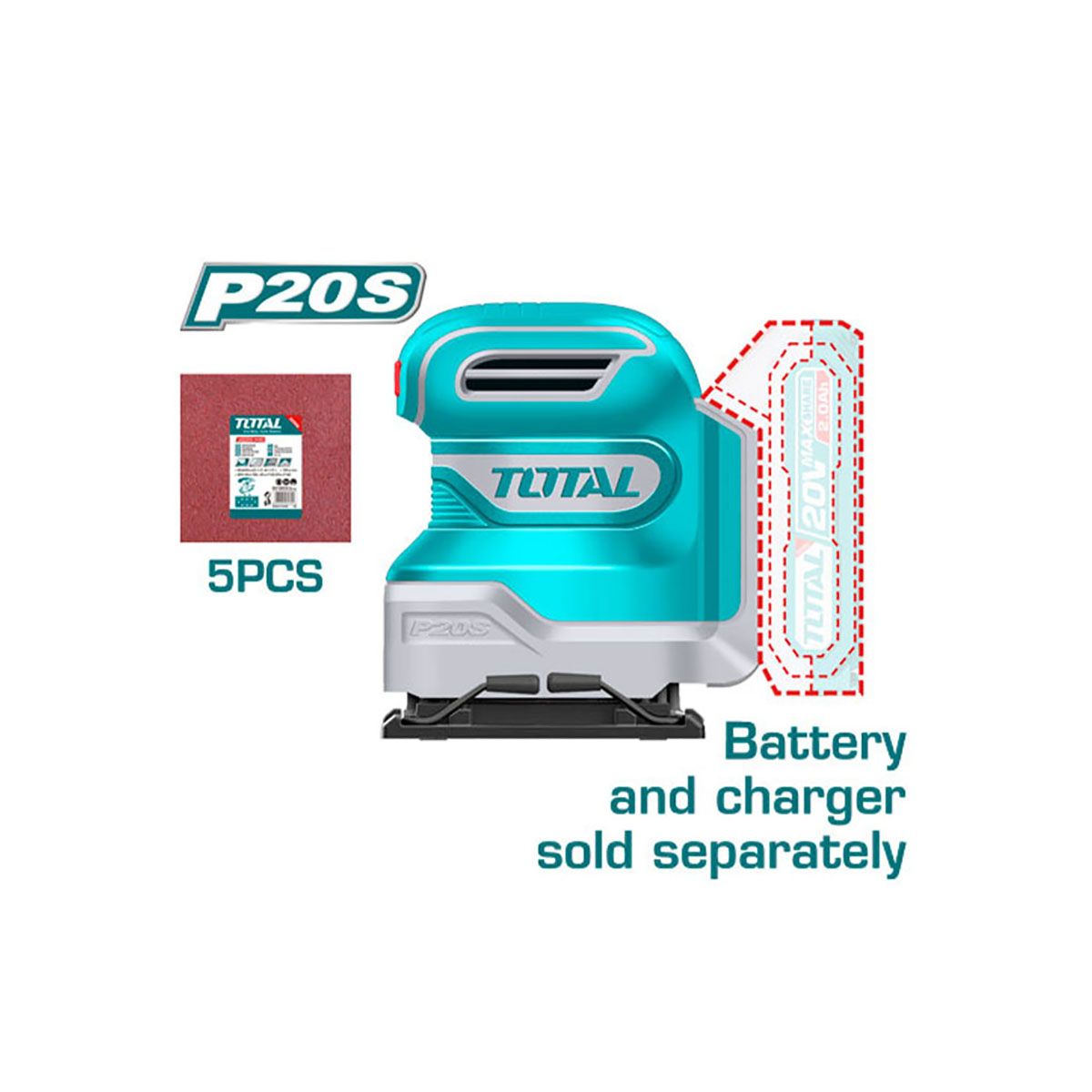 Điện áp: 20V. Tốc độ không tải: 12000 vòng/phút Kích thước đế chà: 110mmx100mm. Kèm 5 giấy nhám 1 pin 2.0Ah (TFBLI2001). 1 sạc (TFCLI2001E) Điện áp sạc: 220-240V~50/60Hz. Đóng gói trong hộp màu