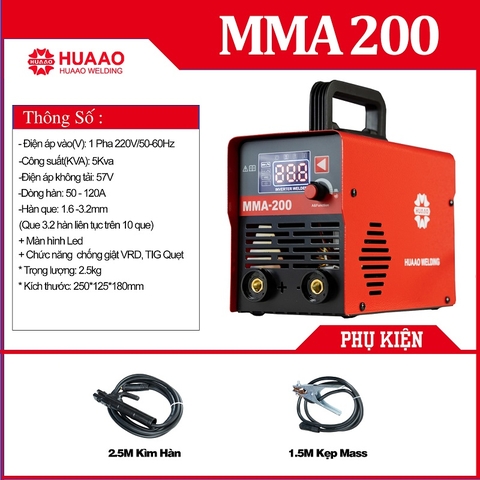 + Máy hàn Huaao MMA 200 có 2 chức năng : Hàn Que & Tig quẹt