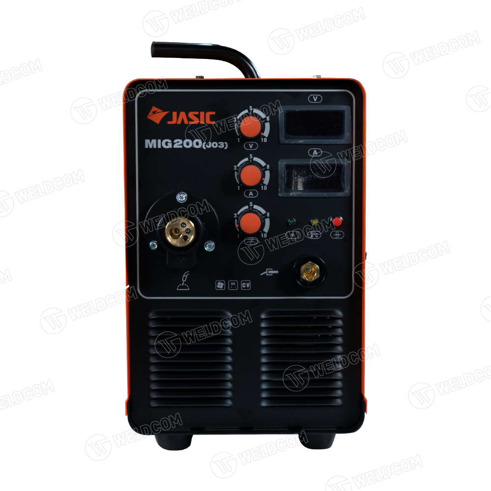 - Máy hàn Jasic MIG là máy hàn điện tử dùng phương pháp hàn hồ quang kim loại trong môi trường khí bảo vệ, điện cực chính là dây hàn nóng chảy, được cấp tự động vào vật hàn, môi trường là khí CO2 hoặc Heli, sử dụng bộ cấp dây.