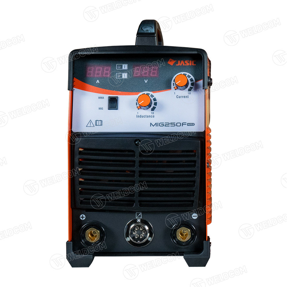 - Máy hàn Jasic Mig-250F N253 được trang bị màn hình và hiển thị đầy đủ các thông số của máy như: điện áp, dòng hàn, tùy chỉnh chế độ hàn Mig hoặc que, núm điều chỉnh hồ quang.