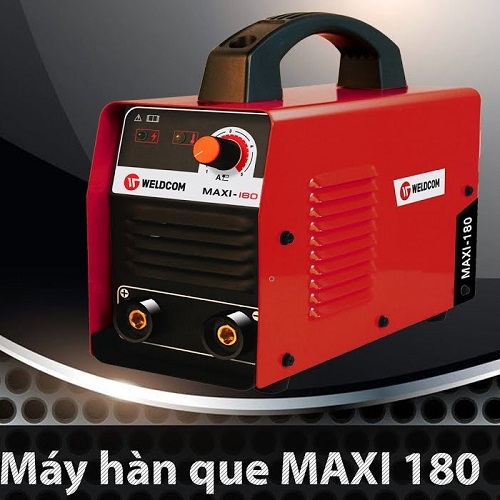 - Máy hàn que MAXI 180 là sản phẩm được sản xuất theo công nghệ của Anh, là dòng máy hàn siêu khoẻ của thương hiệu Weldcom trong thời gian gần đây nổi trội hơn các dòng máy hàn thông thường khác với nhiều tính năng nổi bật. Việc sử dụng Máy hàn Weldcom sẽ có hiệu suất làm việc rất cao, thời gian hàn không giới hạn.