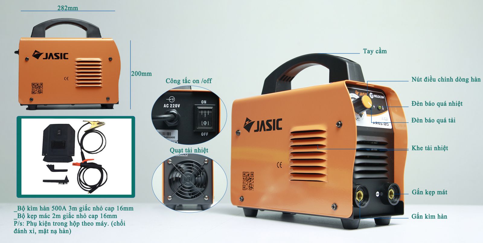 - Máy hàn que Jasic ARES 120 được thiết kế nhỏ gọn và nhẹ nhàng giúp chúng ta di chuyển một cách dễ dàng và nhanh chóng.