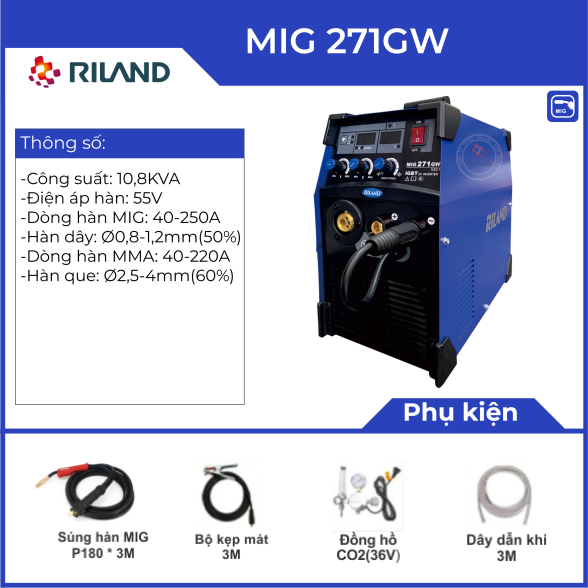 + Máy hàn Riland Mig 271GW Có thể điều chỉnh dòng điện , điện áp , điện cảm