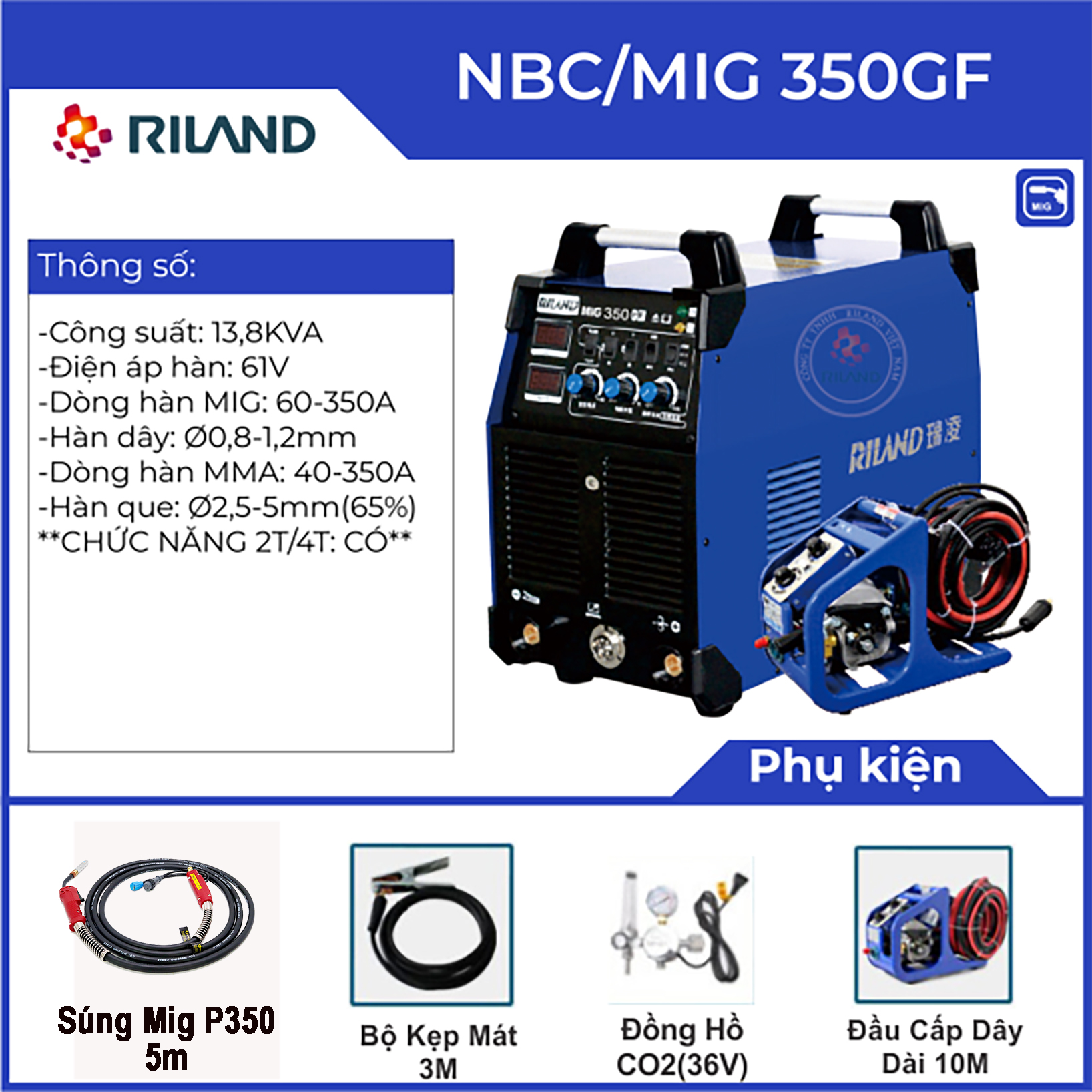 + Máy hàn Riland NBC 350GF Trang bị đầu cấp dây rời dài 10m