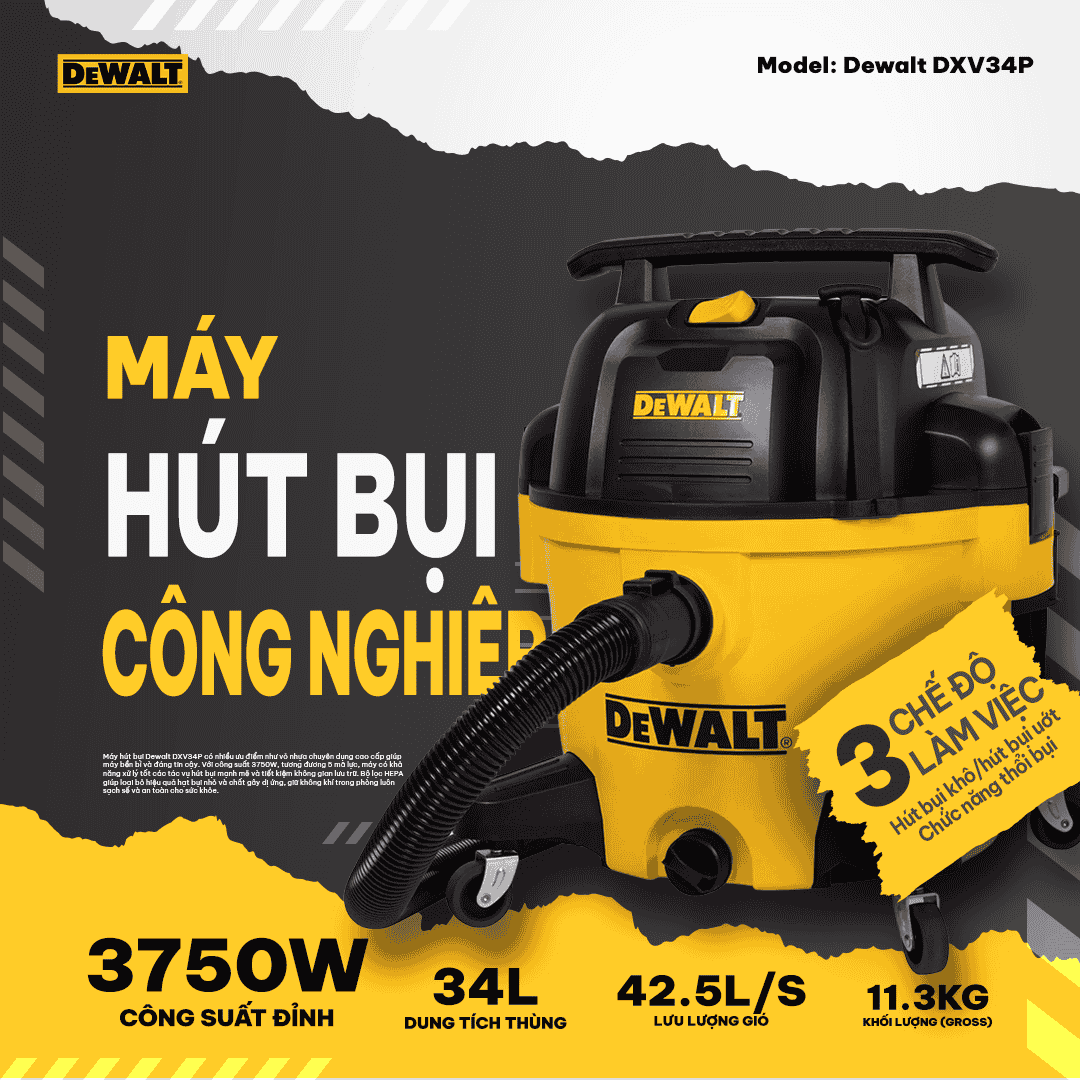 Máy hút bụi công nghiệp 3 chức năng ướt/khô/thổi Dewalt DXV34P 34L