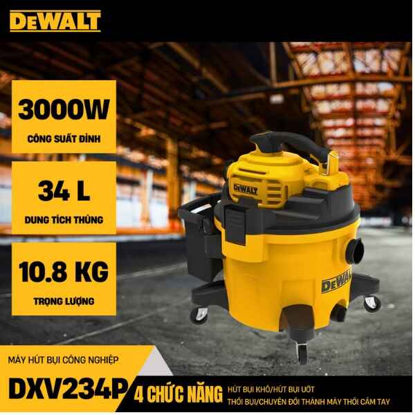 Máy hút bụi công nghiệp 4 chức năng ướt/khô/thổi và chuyển đổi thành máy thổi cầm tay Dewalt DXV234P