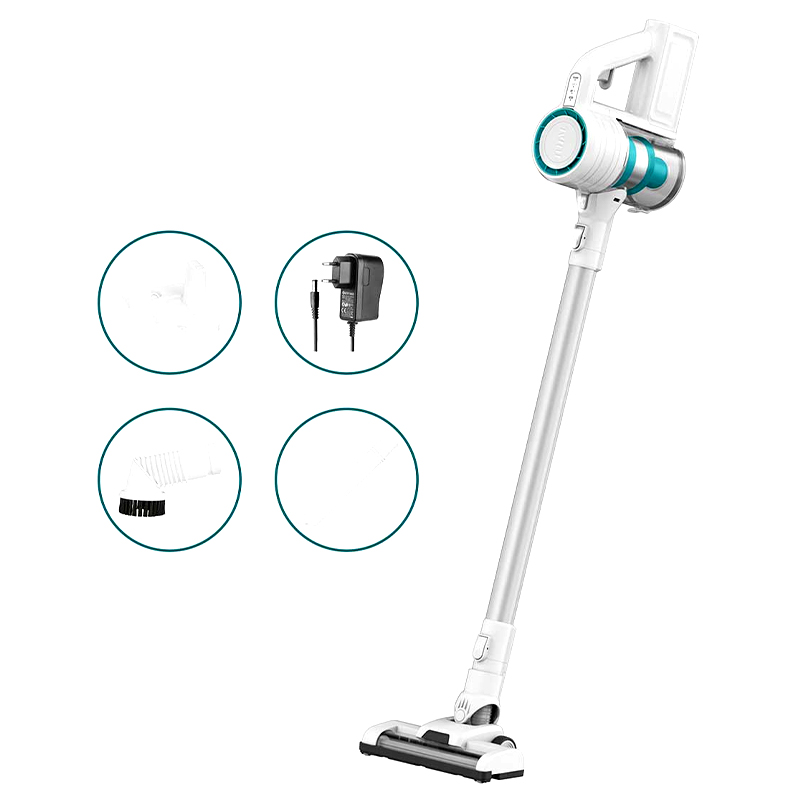 Điện thế: 22.2V, áp suất chân không:≥10 Kpa, Dung tích: 0.8L, Công suất: 140W. Lồng xoáy đôi, Pin Lithium-Ion 2200mAh, Động cơ dây đồng nguyên chất. Bộ lọc HEPA. Điện thế sạc: 110v-240V ~ 50 / 60Hz. Kèm 1 adapter kiểu Mỹ.Thời gian sạc: 4,5H. Thời gian làm việc: ≥35 phút mức tốc độ thấp. Thời gian làm việc: ≥20 phút mức tốc độ cao.1 ống kim loại, 1 sạc và móc nhựa. 1 vòi phun kẽ hở, 1 chiếc bàn chải sofa