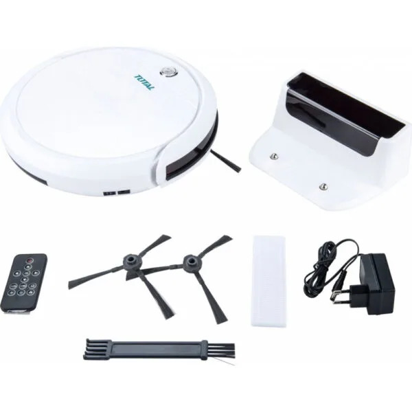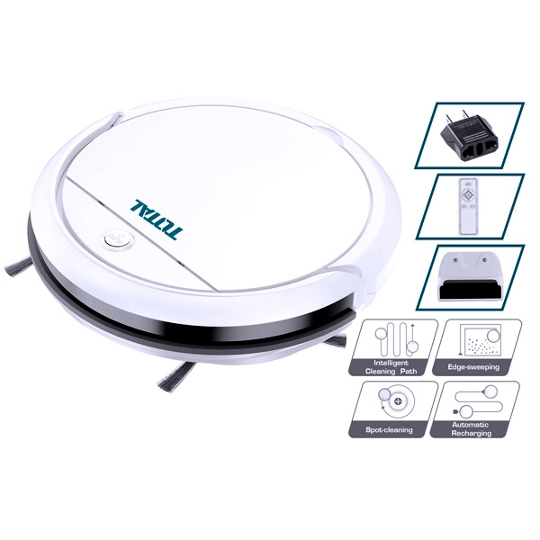 Loại quỹ đạo, tự xác định đường đi và phương án làm sạch tối ưu. Điện thế vào sạc: 110-240V (50/60Hz). Điện thế ra sạc: 13.5V/0.7A DC. Dung lượng pin Lithium: 2.0Ah . K/thước: (đường kính x chiều cao): φ300*75mm. Lực hút: 600~900Pa; Thời gian hoạt động: 3~4H, , Chỉ dùng quét hút khô. Kèm theo 2 chổi quét, Với chức năng chổi điện và cảm biến chống va chạm và rơi ngã cầu thang , chế độ vệ sinh theo mép tường và chế độ sạc pin tự động.