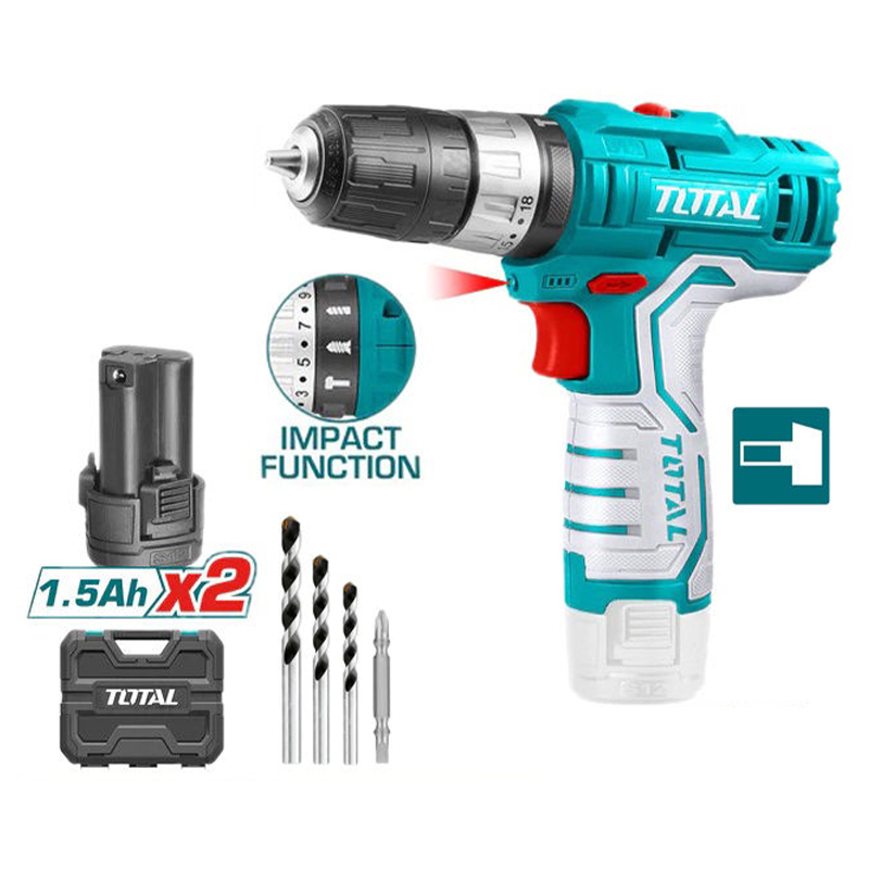 Điện thế: 12V. Tốc độ không tải: 0-400 / 0-1500rpm.Tốc độ tác động tối đa: 22500 / phút. Mô-men xoắn cực đại: 20NM. Khả năng khoan: 0,8-10mm. Thiết lập mô-men xoắn: 18 + 1 + 1. Điện thế Sạc : 220-240V ~ 50 / 60Hz. Đèn làm việc tích hợp. Kèm 2 pin 1,5Ah & 1 sạc. Kèm 1 mũi vit Cr-V 65mm, 3 mũi khoan Đóng gói bằng hộp nhựa