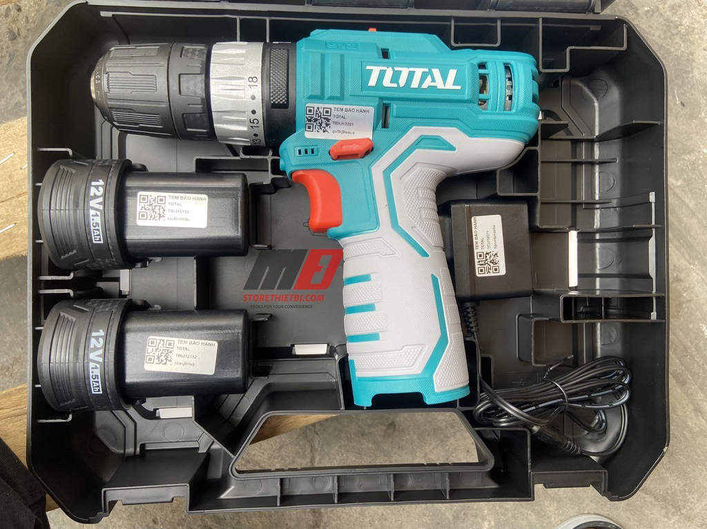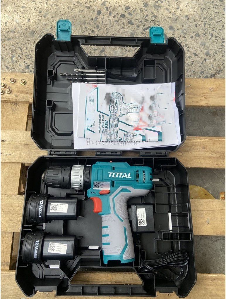 | Phụ kiện đi kèm | 2 pin 1,5Ah & 1 sạc, 1 mũi vit Cr-V 65mm, 3 mũi khoan |