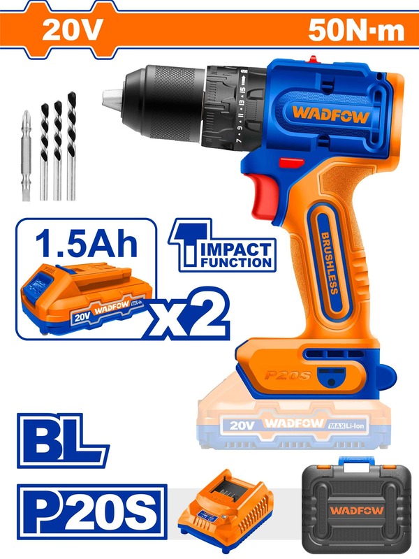 - Bao gồm: 1 chiếc mũi vít Cr-V, 3 chiếc mũi khoan bê tông, 2 chiếc pin 1.5Ah (WLBP515), 1 chiếc sạc (WFCP518) Điện áp sạc: 220-240V~50/60Hz
