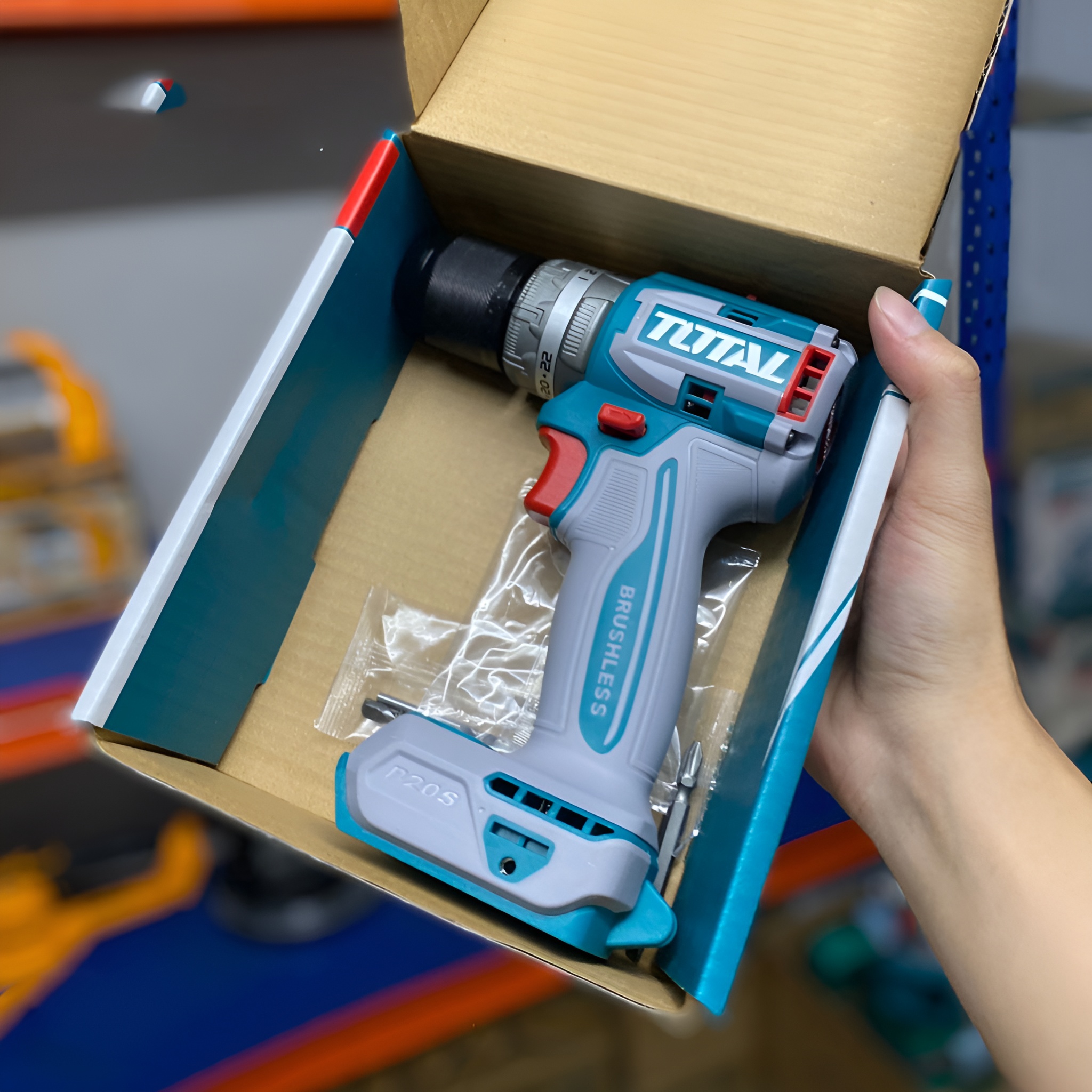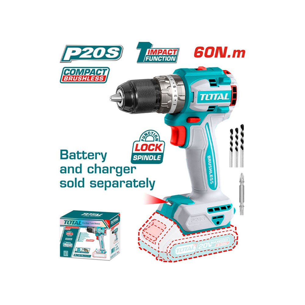 Mô tơ không chổi than. Điện áp: 20V Tốc độ không tải: 0-550/0-2000rpm Tốc độ tác động tối đa: 30000bpm. Mô-men xoắn cực đại: 60Nm Đầu khoan kim loại. Khả năng khoan: 13mm Cài đặt mô-men xoắn: 22+1+1. Hộp số cơ 2 tốc độ Chức năng khóa trục chính. Đầu khoan khóa tự động Đèn LED làm việc tích hợp. Không kèm Pin & sạc Kèm 1 mũi khoan Cr-V 65mm, 3 mũi khoan tường. Đóng gói trong hộp màu